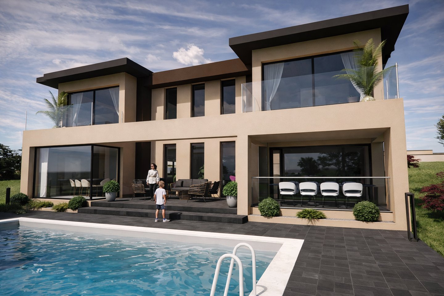 Le projet consiste en une villa contemporaine de standing comprenant une cuisine ouverte sur séjour, une suite parentale et 3 chambres. Une piscine extérieure complète l’ensemble immobilier.