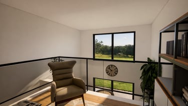 Il s’agit d’une maison contemporaine sur 2 niveaux comprenant une cuisine ouverte sur séjour. La suite parentale complète le rez-de-chaussée. Un étage avec mezzanine agrémente l'espace. On y retrouve 2 chambres et leur salle de bains ainsi qu'un bureau.