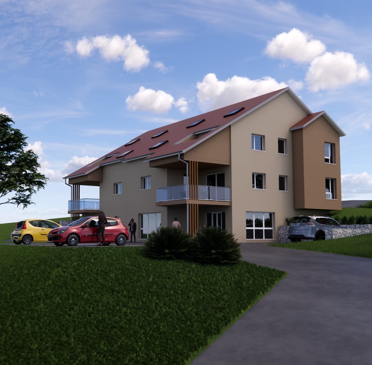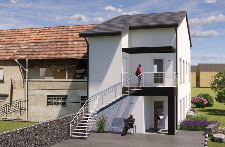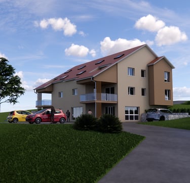 Il s’agite de la construction d’un immeuble collectif en secteur rural de 6 logements pour une surface totale de 520.00 m². On pourra également y trouver des services de proximité.