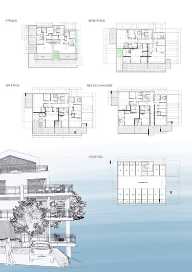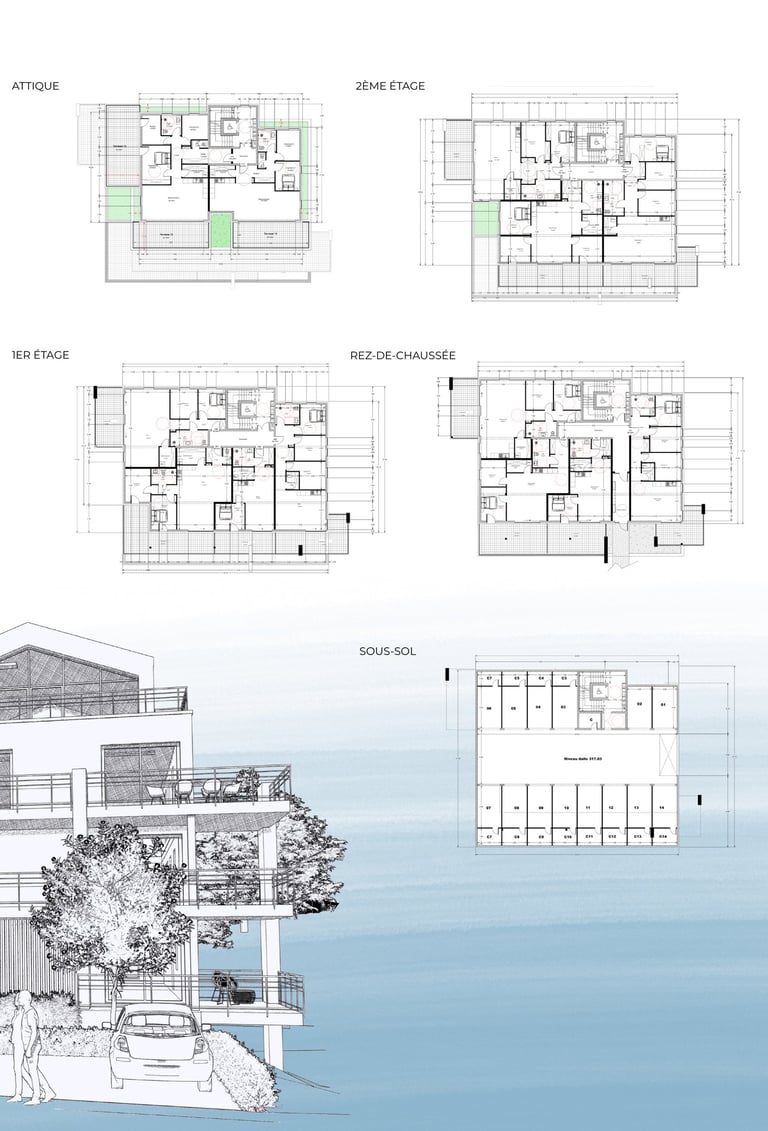Il s’agit de la construction d’un ’immeuble collectif de 10 logements pour une surface totale de 1 500.00 m² dans le cadre d’un programme de promotion immobilière.